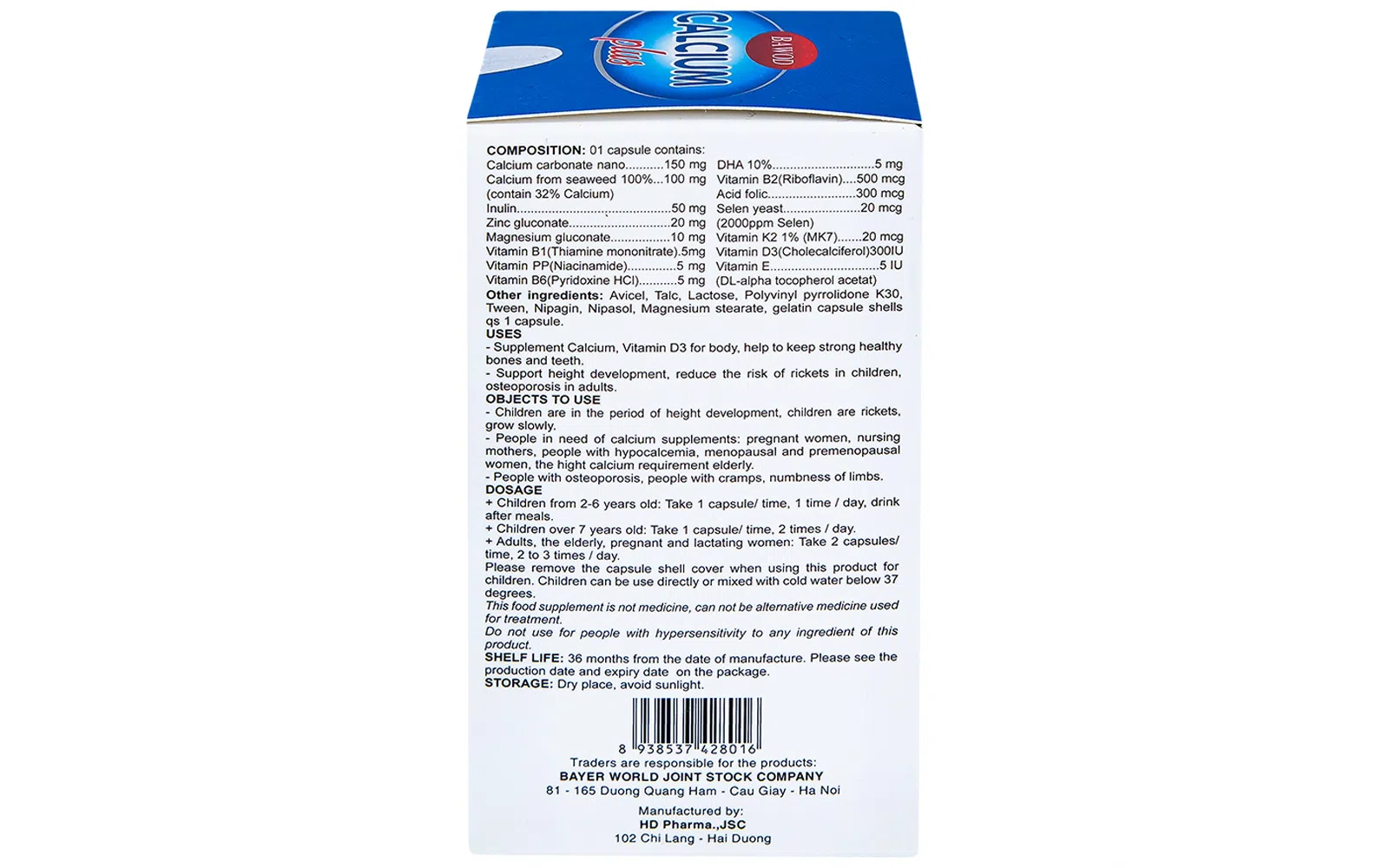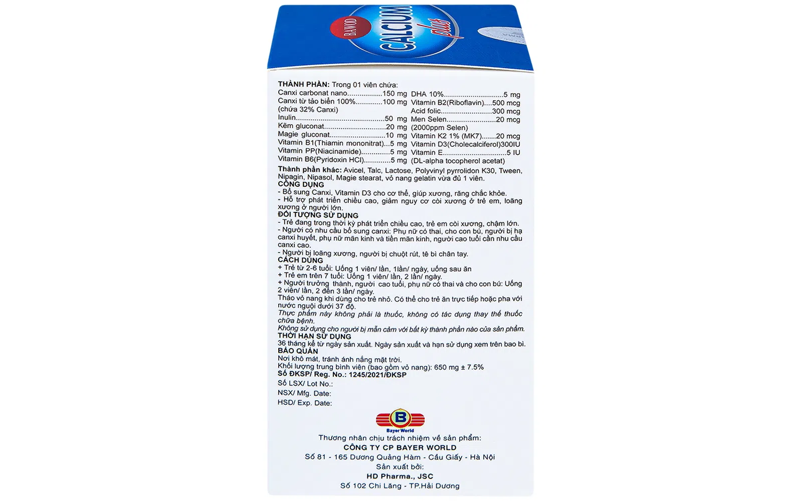 Baywod Calcium Plus được sản xuất bởi HD Pharma. Công ty đặt mục tiêu luôn cung cấp tổng chất lượng tốt nhất, thỏa mãn cao nhất nhu cầu về một cuộc sống khỏe mạnh của cộng đồng. Phấn đấu trở thành biểu tượng và một trong những thương hiệu hàng đầu của Việt Nam trong lĩnh vực chăm sóc sức khỏe, sản xuất ra những sản phẩm dược phẩm theo tiêu chuẩn cao nhất của ngành dược thế giới, tương đương với các sản phẩm sản xuất ở các nước tiên tiến với giá cả phù hợp cho người Việt.